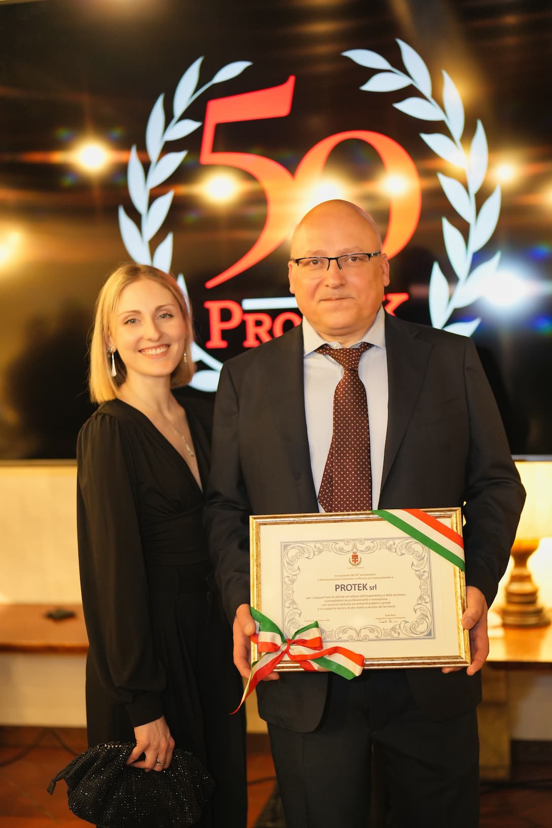 Mezzo secolo di PROTEK. La targa del Comune «A servizio della comunità»